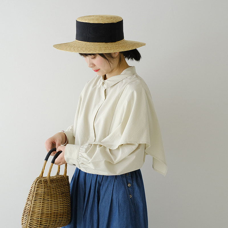 西町村屋休闲棉麻长袖衬衣女夏季新款复古简约百搭衬衫XHAB10270