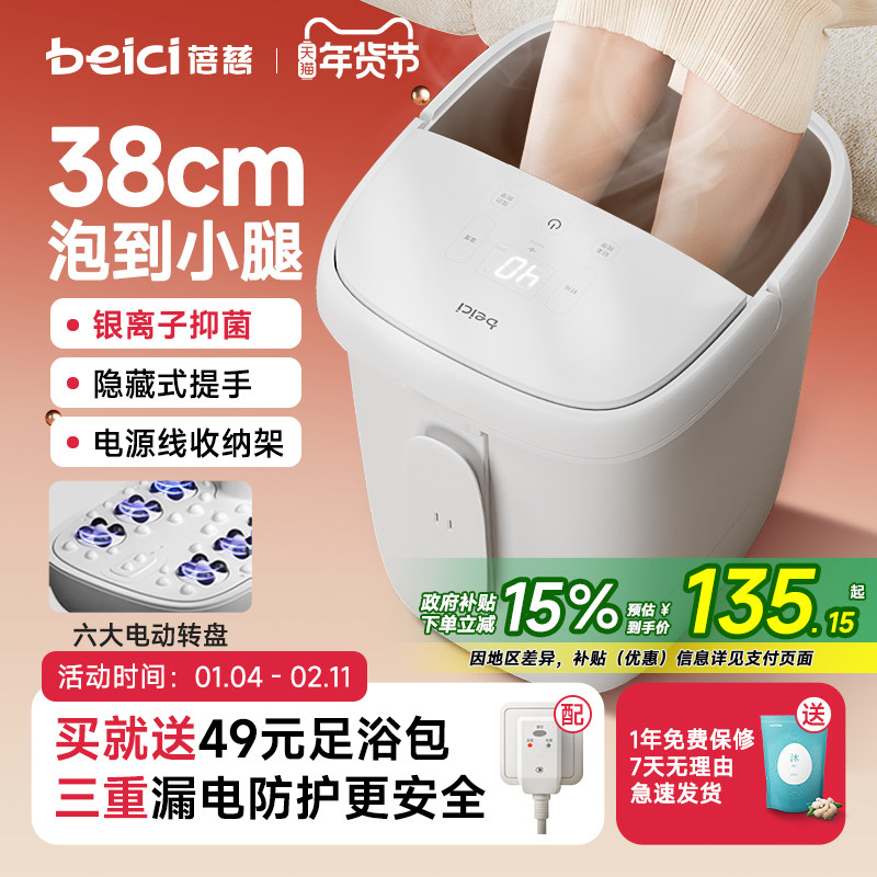 政府补贴蓓慈小白泡脚桶加热恒温按摩加热家用全自动礼物洗脚桶盆