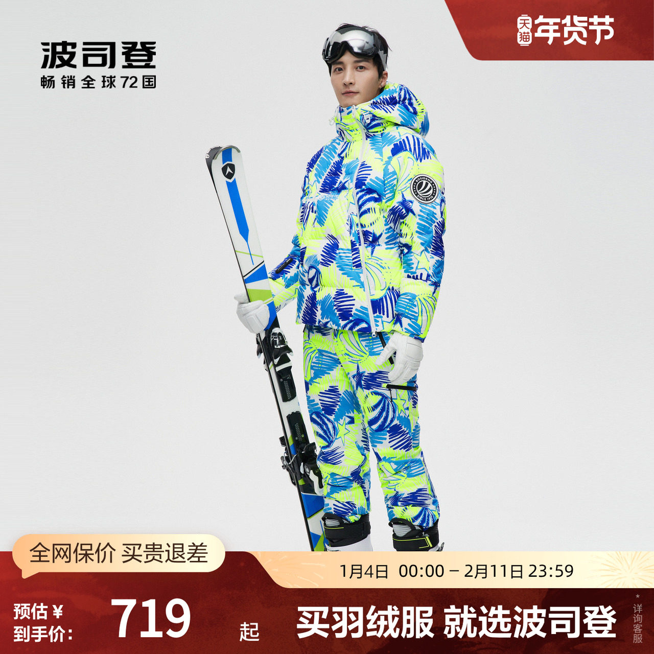 【滑雪服】波司登男鹅绒时尚滑雪GORE-TEX面料涂鸦印花厚羽绒服