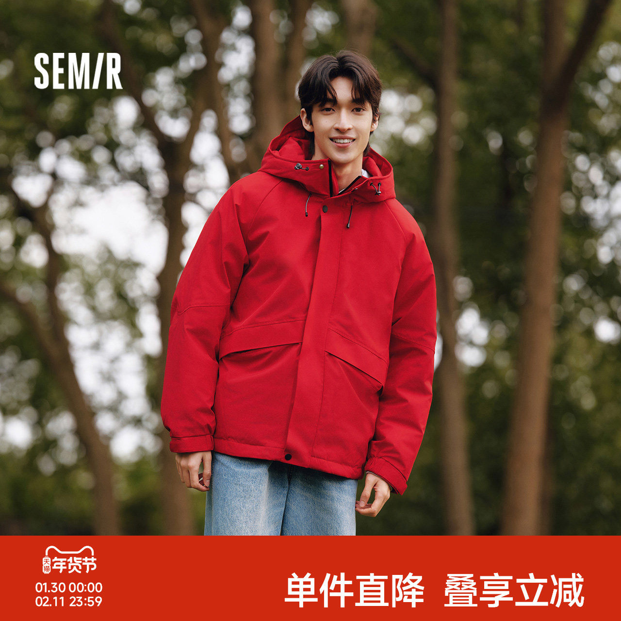 森马羽绒服男中长款2024冬新款新年红色三防防风户外滑雪连帽保暖