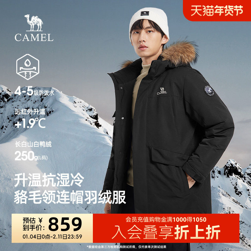骆驼羽绒服男冬季新款毛领防风保暖工装外套户外滑雪鸭绒派克服女