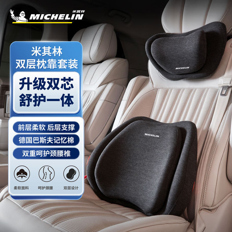MICHELIN米其林汽车头枕减压靠枕双芯记忆棉腰靠双层舒适支撑套装
