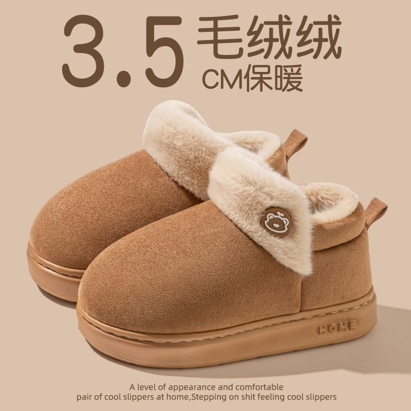 增高毛绒雪地靴女士2025新款冬季加绒包跟保暖短靴室内防滑棉鞋男