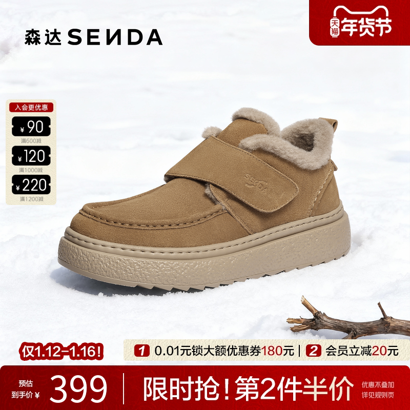 森达雪地靴男2025冬新商场同款户外保暖厚底加绒棉鞋短靴2DU01DD5