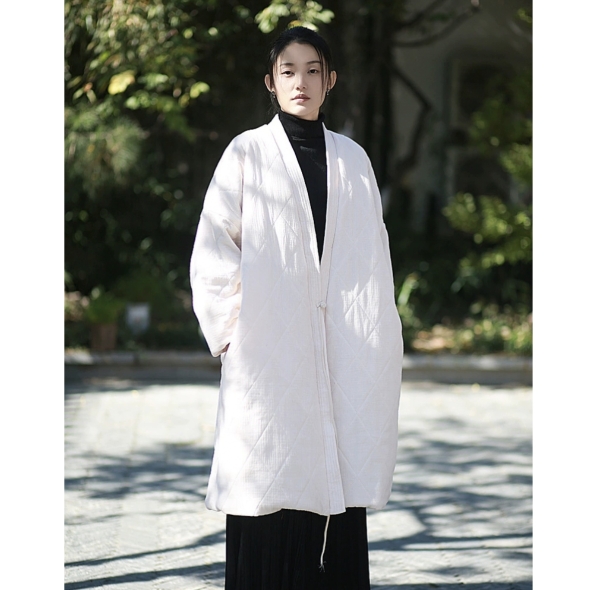 国风盘扣新中式长款棉服外套女秋冬新品宽松夹棉加厚棉衣复古禅意