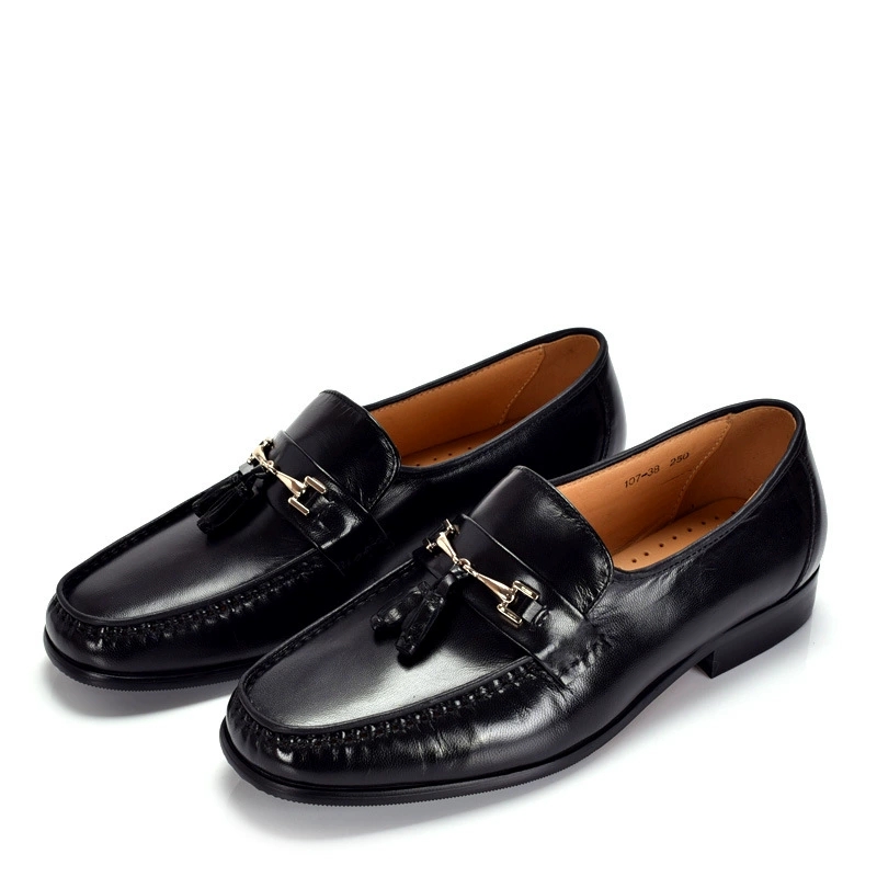 皮鞋男真皮一脚蹬商务正装厚底青年英伦透气内增高套脚牛皮男鞋子