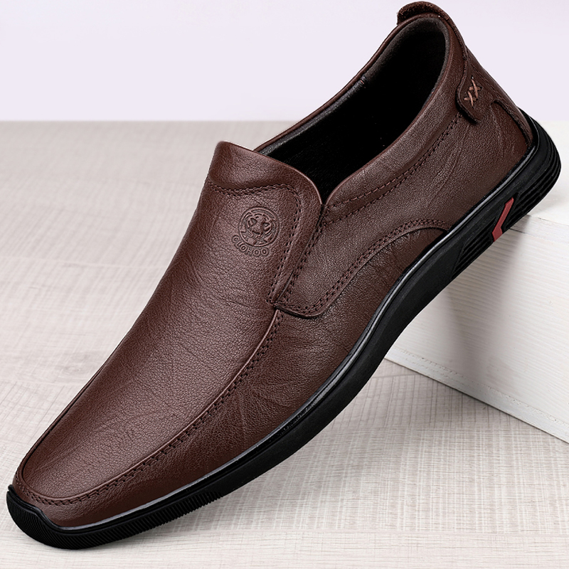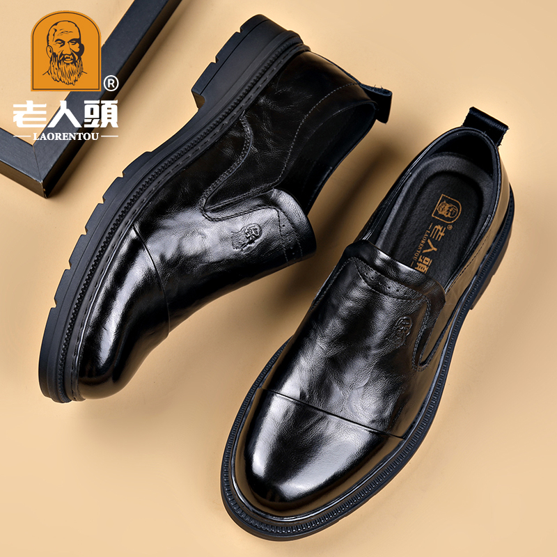 老人头商务休闲皮鞋男真皮透气中老年爸爸鞋一脚蹬头层牛皮男鞋子