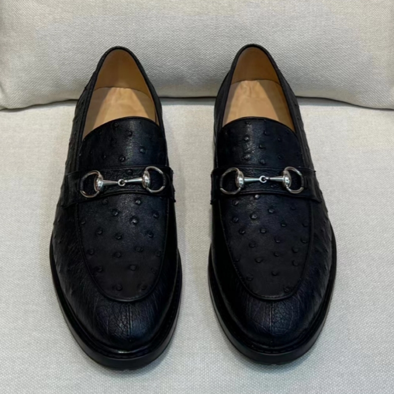 鸵鸟皮男鞋子经典商务休闲百搭手工皮鞋轻质舒适柔软一脚蹬懒人鞋