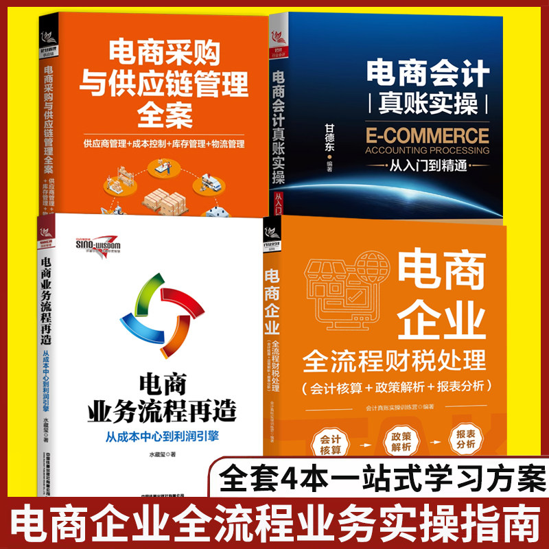全4册 电商企业全流程财税处理+采购与供应链管理全案+会计真账实操从入门到精通+电商业务流程再造电子商务公司 会计零基础书籍