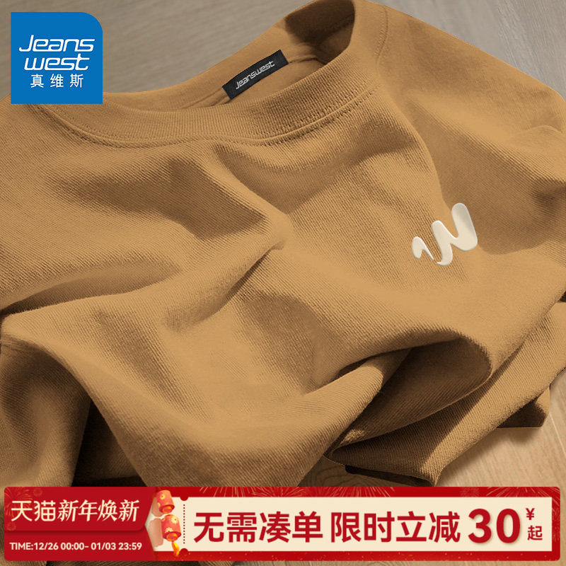 GV真维斯美式复古长袖t恤男纯棉运动秋装字母印花高级感男式体恤C