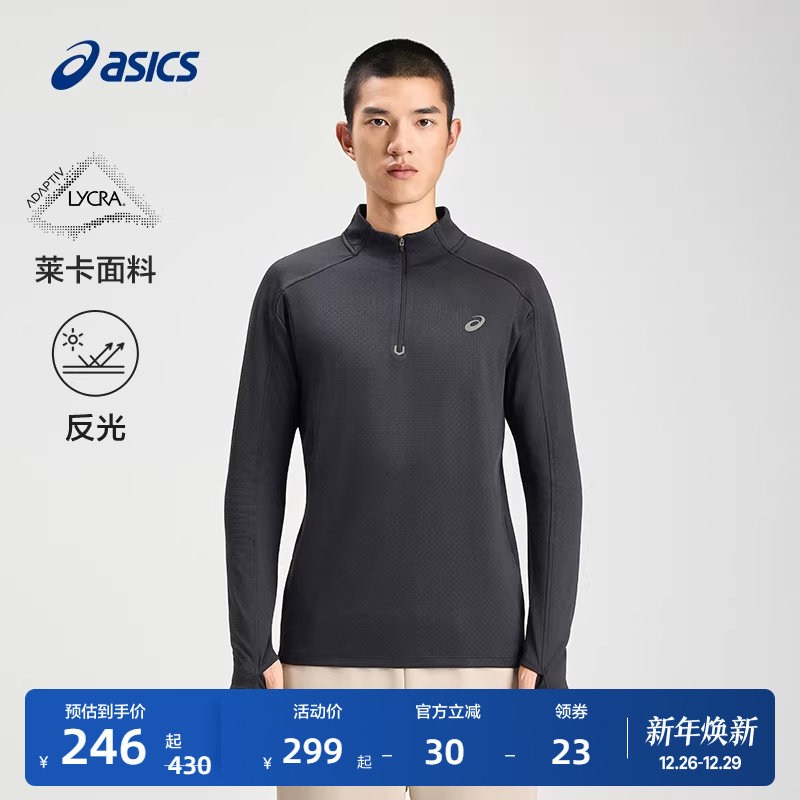 ASICS亚瑟士新款男式莱卡抓绒跑步长袖T恤轻量舒适保暖运动T恤
