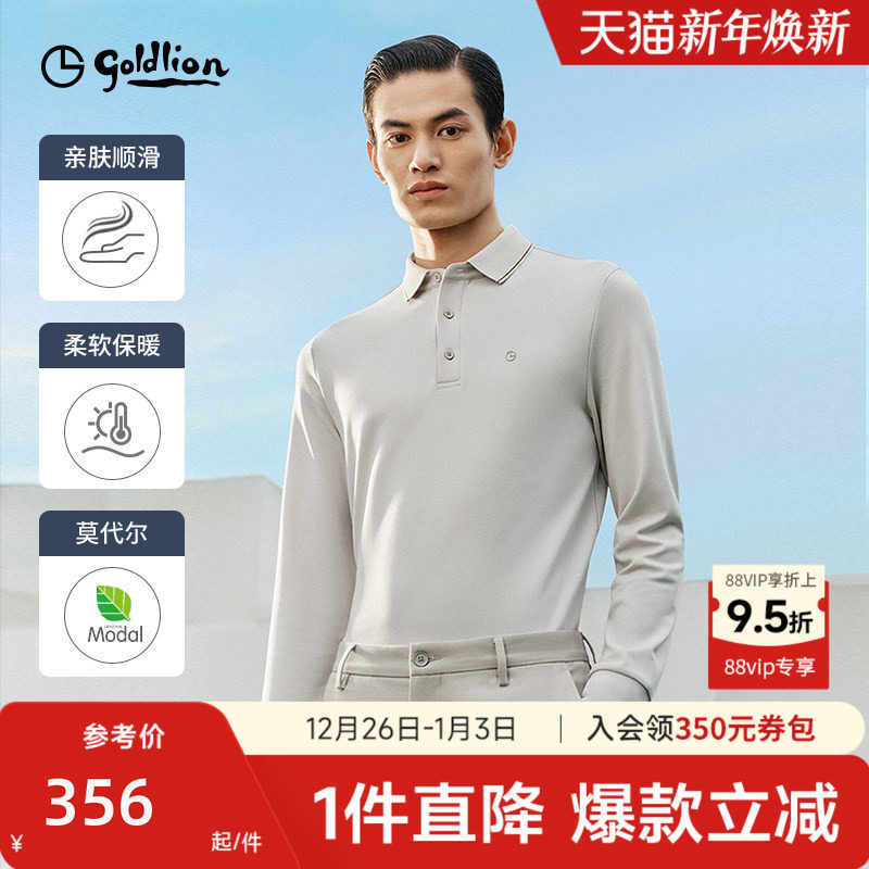 【柔软抗皱】金利来秋冬新款柔软商务男式长袖T恤上衣翻领polo衫