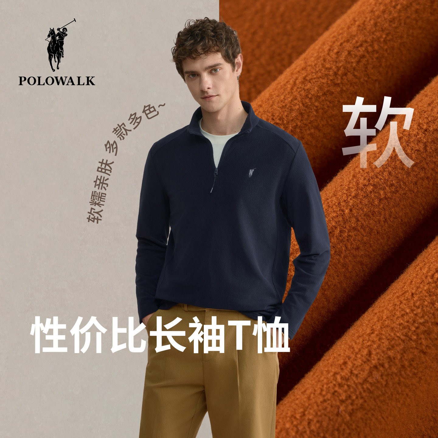 POLOWALK男式长袖T恤2025冬季新品简约挺括半拉链立领套头上衣男