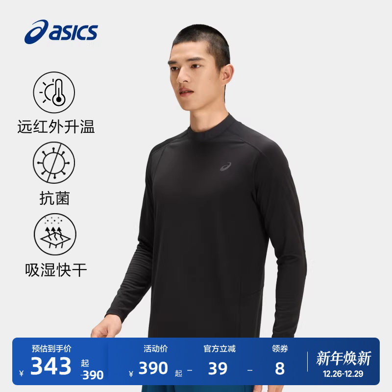 ASICS亚瑟士新款男式微绒打底长袖T恤保暖柔软弹力针织运动T恤