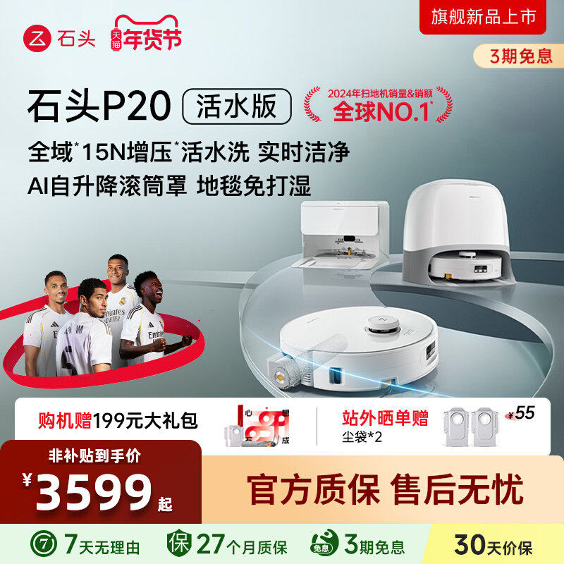 【官方正品】石头扫地机器人P20活水版扫吸拖地一体全自动自清洁
