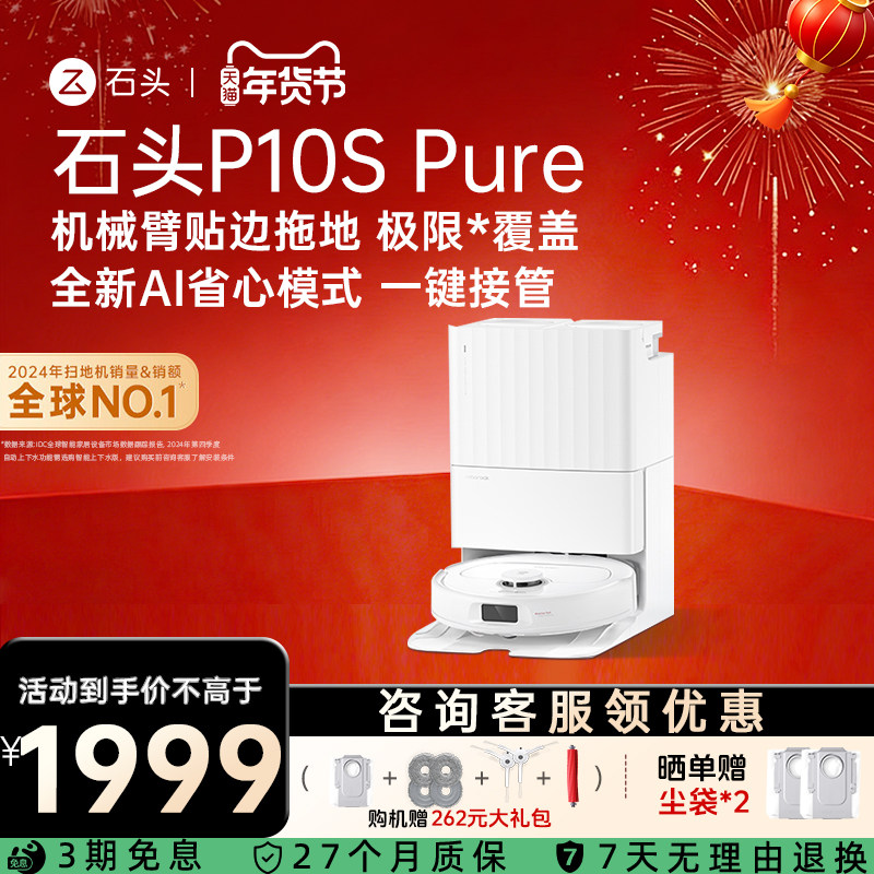 石头扫地机器人P10S Pure自清洁扫拖地一体机全自动智能家用清洗