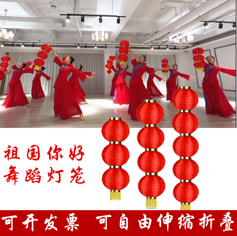 祖国你好新年元旦表演专用红色灯笼中国风喜庆舞蹈道具连串可折叠