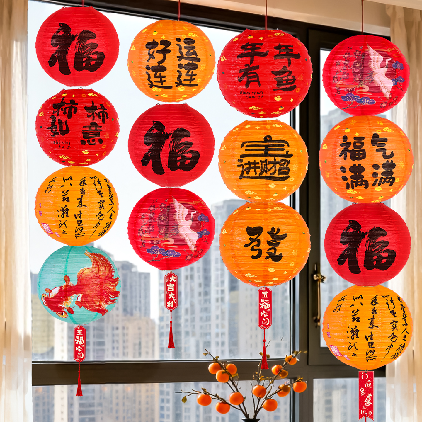2026马年元旦大红色灯笼装饰福字摆件幼儿园教室布置橱窗拍照道具