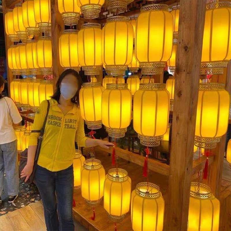 仿古灯笼串古风装饰中国风发光黄红色灯笼墙吊灯走廊户外拍照道具