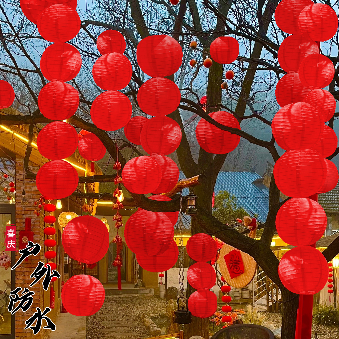 新年元宵节氛围场景布置红色灯笼串户外防水防晒树上挂饰2026新款