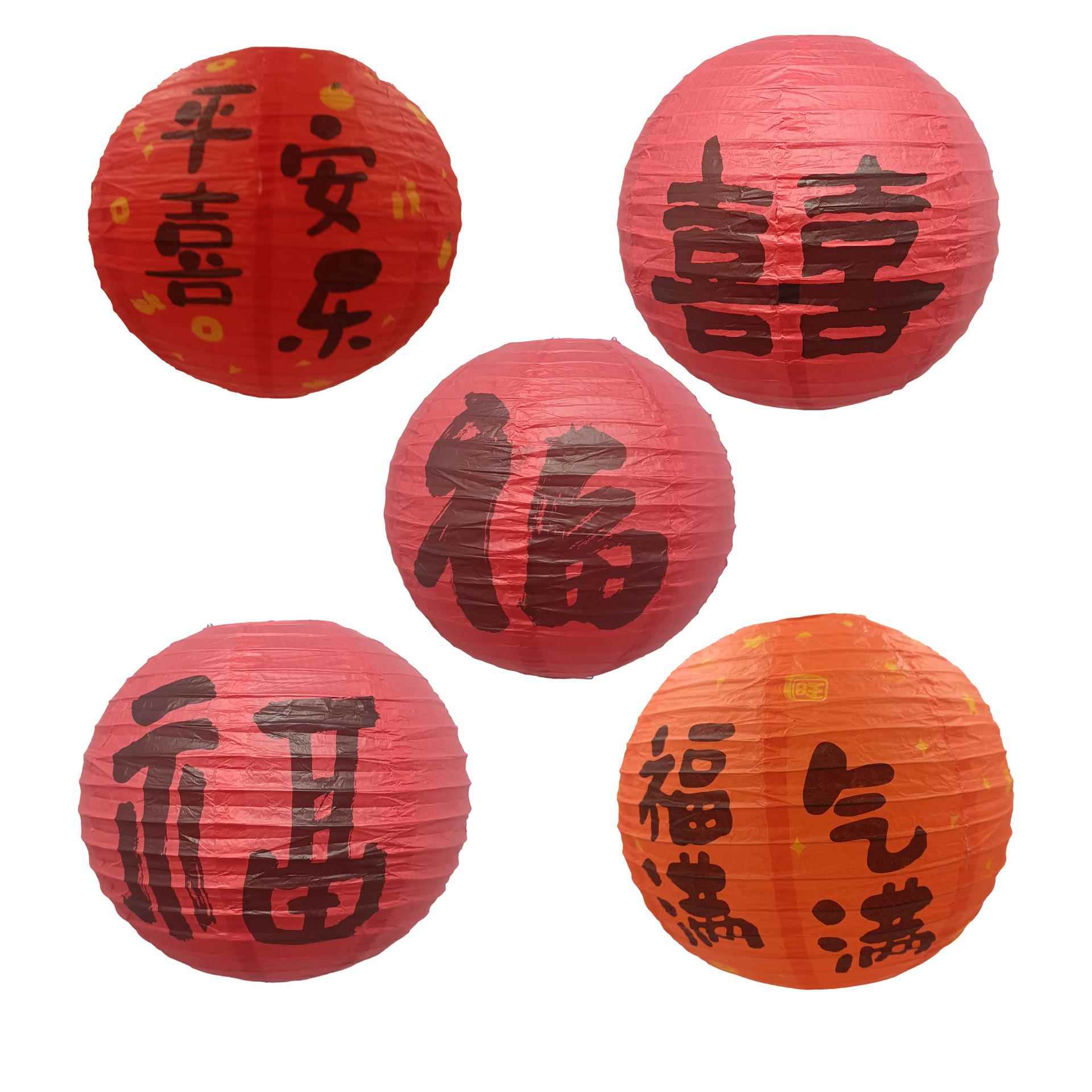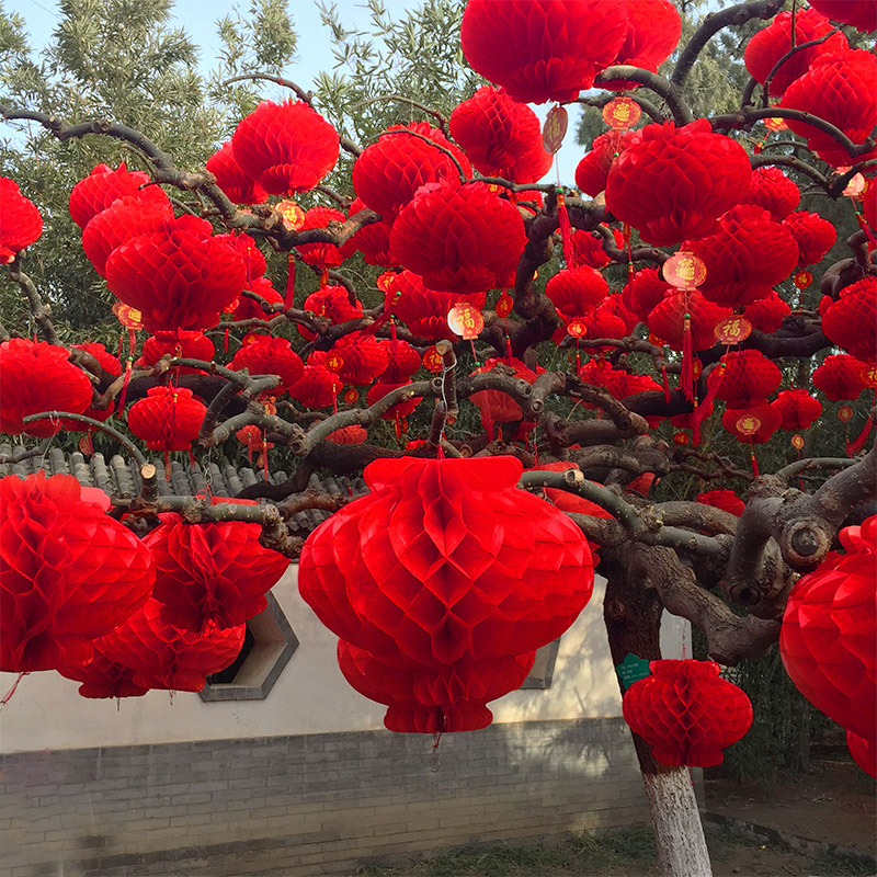 2026新款纸灯笼挂饰喜庆装饰农村结婚小灯笼红色树上福字户外蜂窝