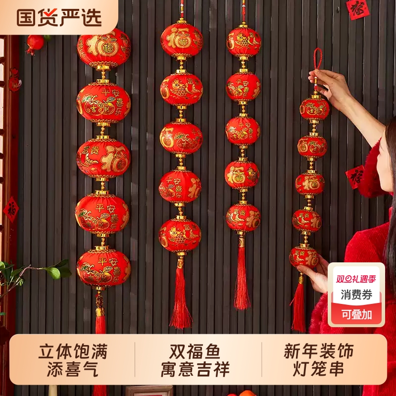 春节装饰品新年挂饰2026马年新款红色灯笼串金边室内布置乔迁之喜