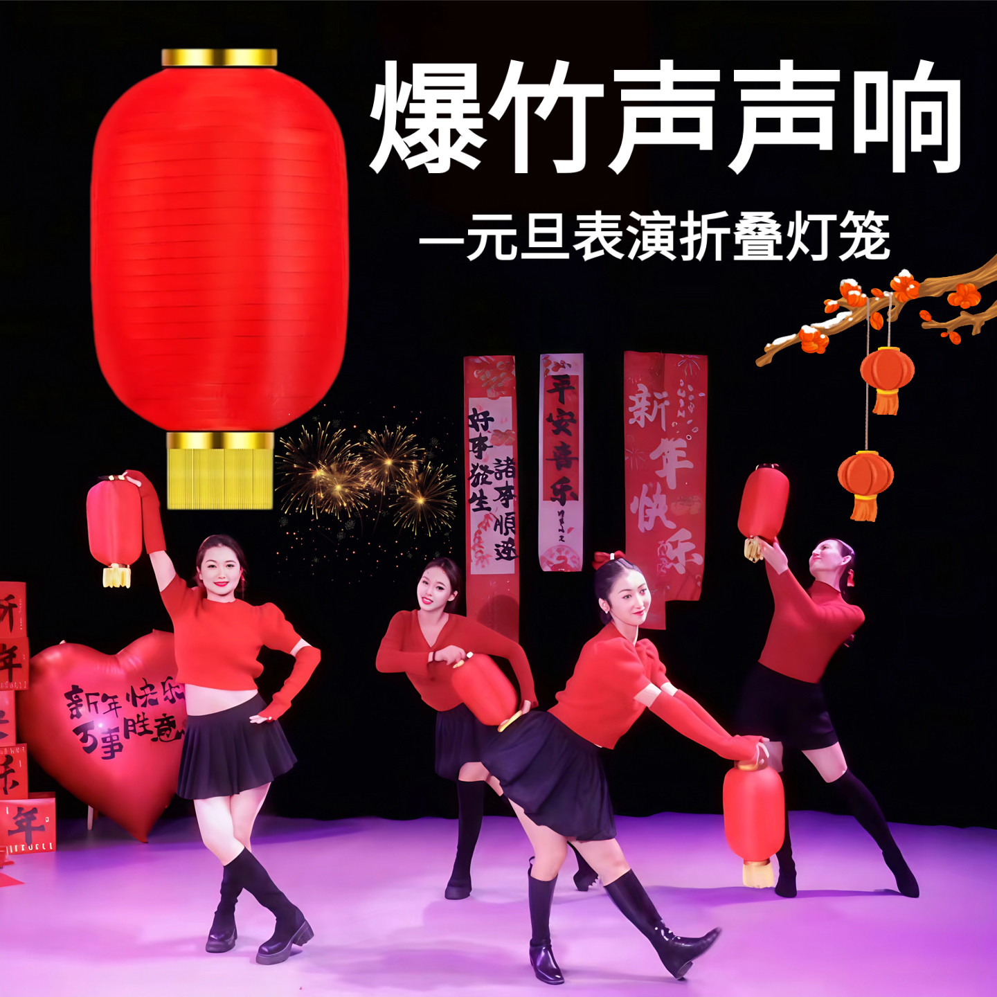 灯笼舞蹈道具爆竹声声响儿童红色灯笼跳舞表演专用可折叠灯笼道具