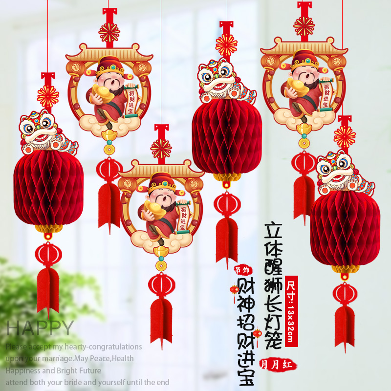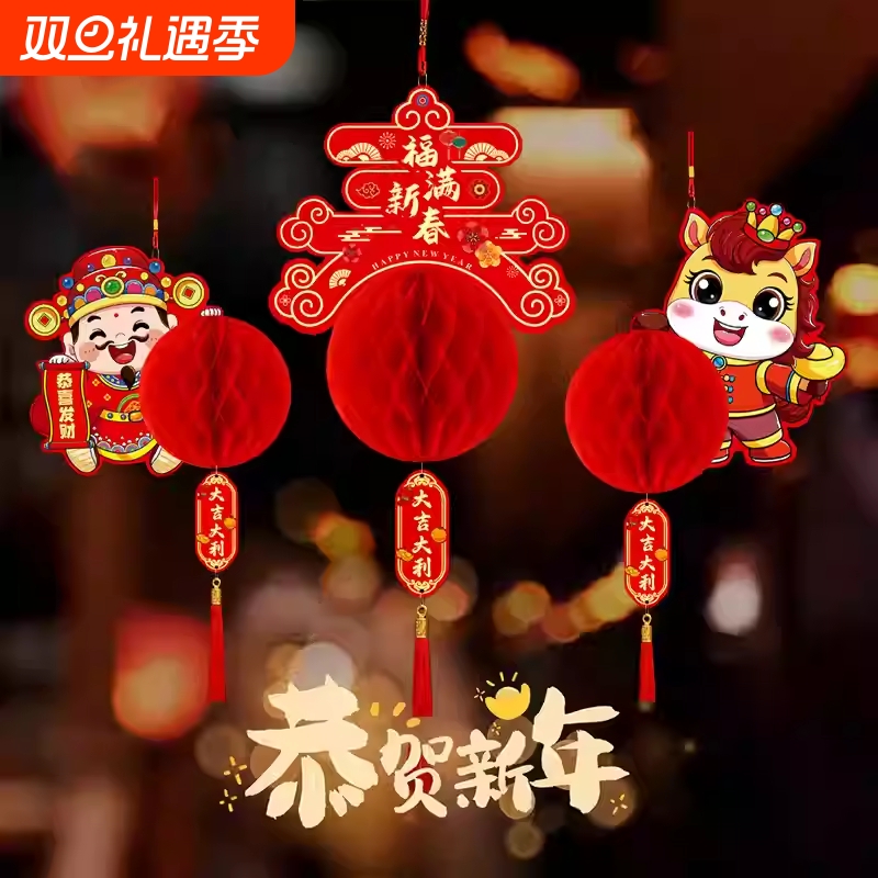 新年装饰元旦马年氛围布置红色灯笼商场挂件珠宝店布置幼儿园教室