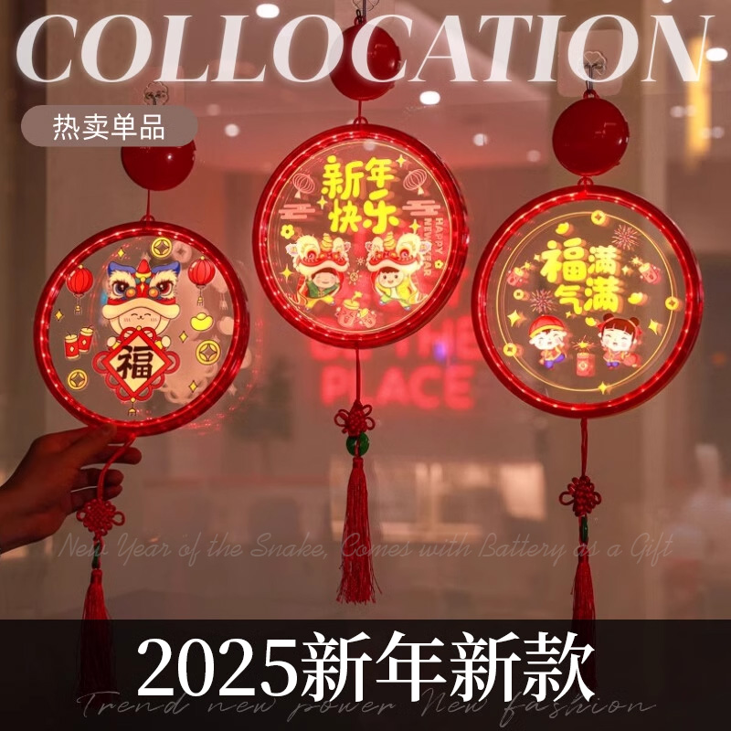 2026马年新年装饰挂件春节客厅氛围摆件福字过年发光窗贴红色灯笼
