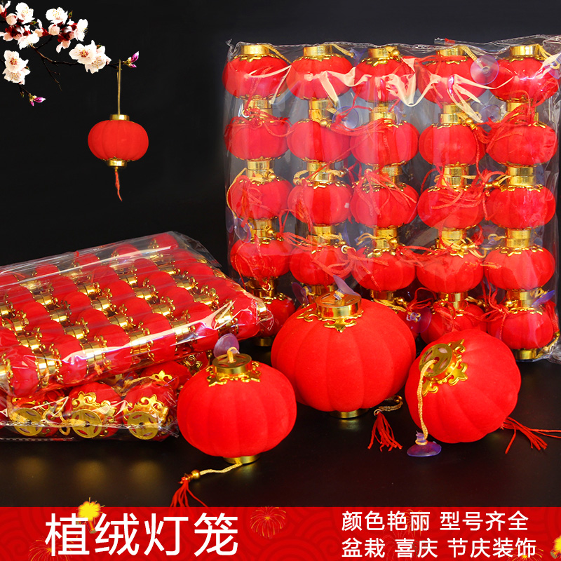 新年马年植绒小红色灯笼挂饰装饰品喜庆盆景绿植过年防水树上挂件