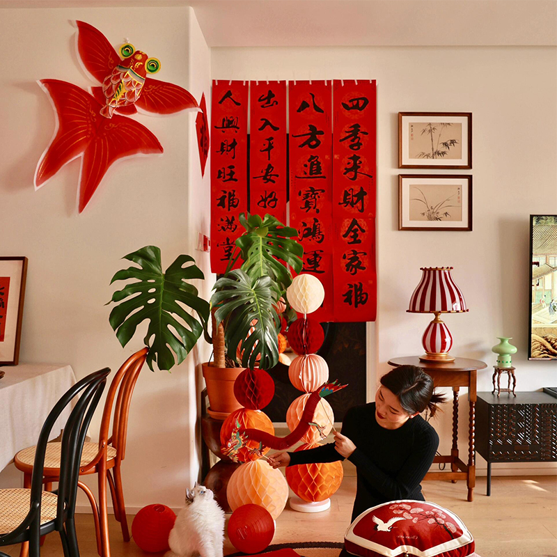 新年跨年锦鲤风筝中式红色灯笼挂件幼儿园环创布置装饰背景墙挂饰