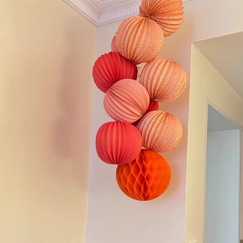 结婚新款小纸灯笼挂饰婚房布置蜂窝农村院子婚礼树上红色装饰用品