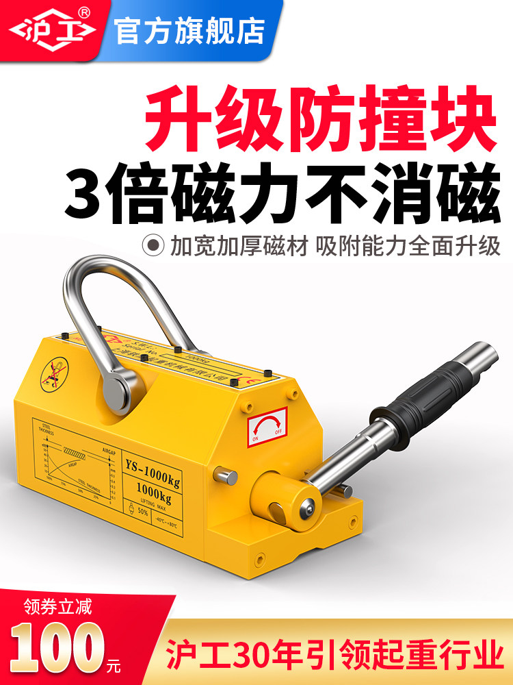 沪工永磁起重器磁力吊600kg1/2/3吨工业强力永磁吸盘磁铁起重吊具
