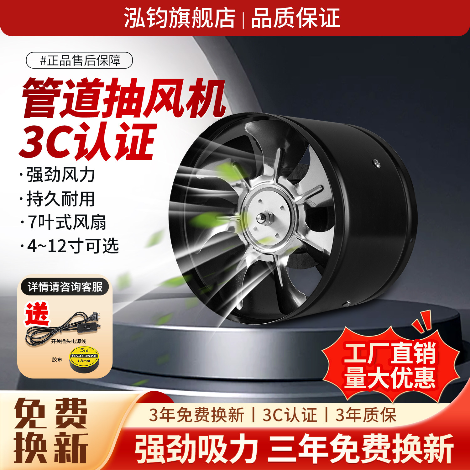 圆形管道风机厨房家用抽油烟排气换气扇大吸力租房排风扇扇卫生间