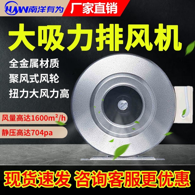 南洋有为圆形管道风机大风量高压金属大吸力厨房油烟排风排气扇全