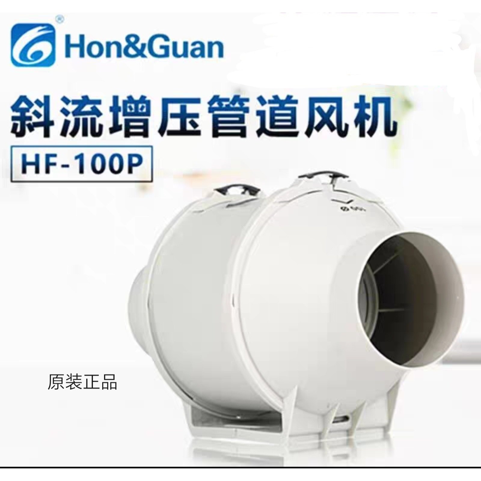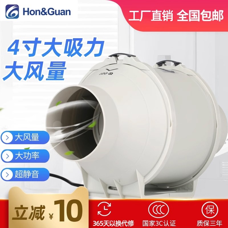 鸿冠斜流管道式换气扇圆形管道风机卫生间排气扇4寸HF-100S机抽风