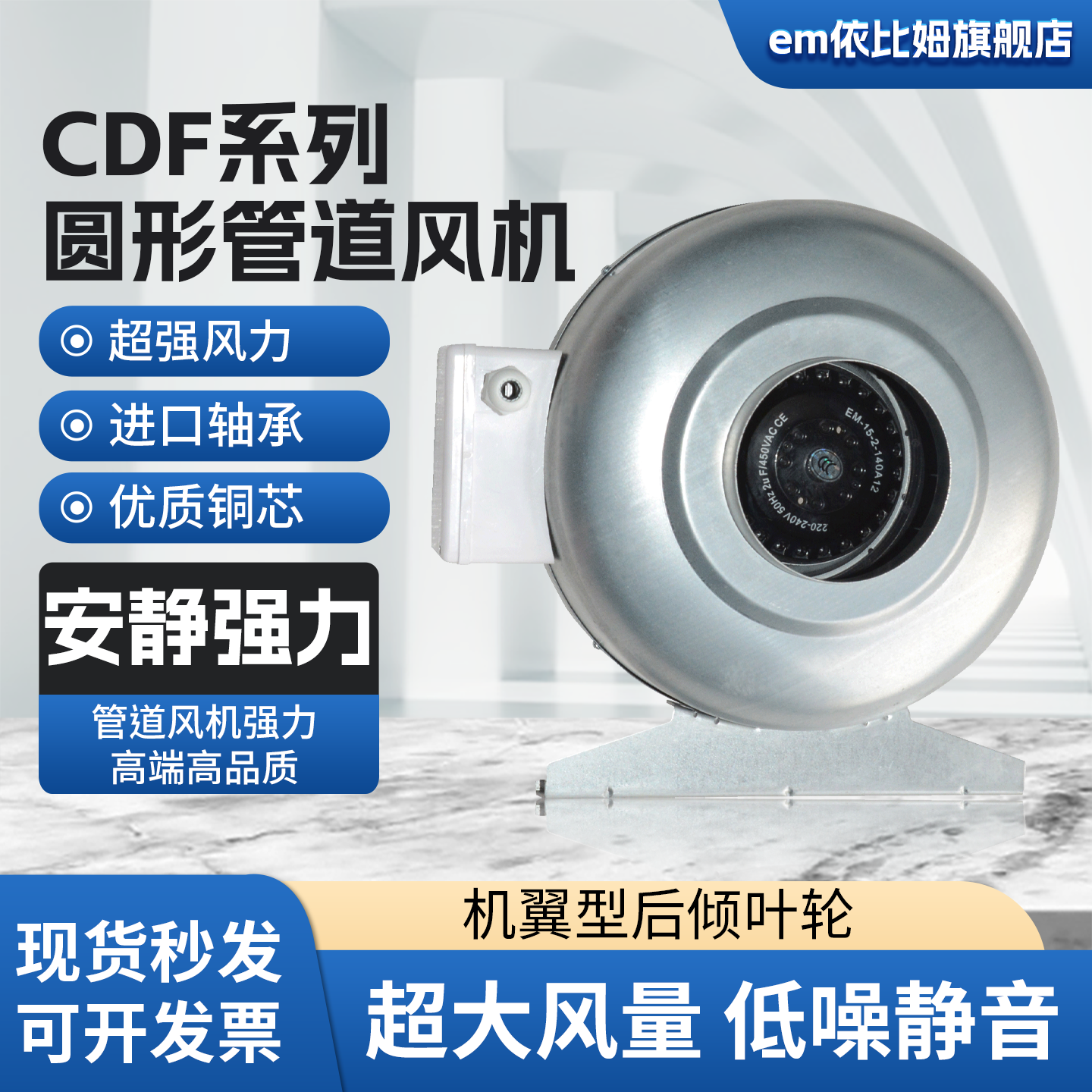 大风量强力涡轮增压圆形管道风机CDF厨房抽油烟机工业排烟排风机