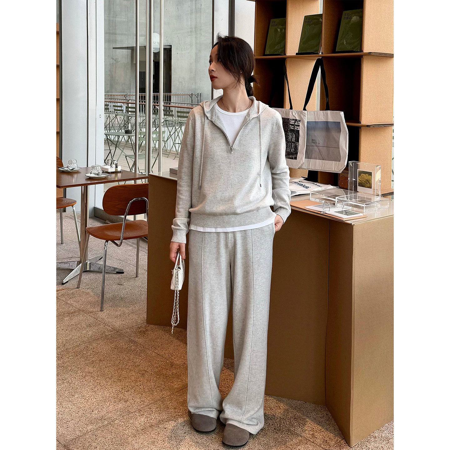 - 羊绒套装阔腿裤