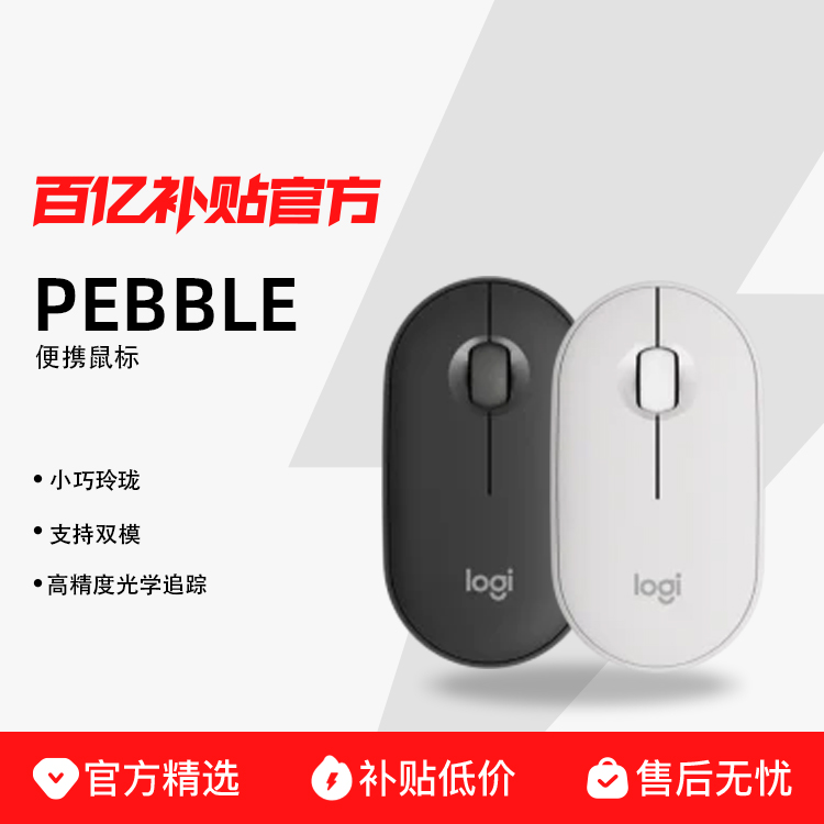 罗技无线鼠标PEBBLE鹅卵石蓝牙轻薄静音女生办公笔记本平板电脑