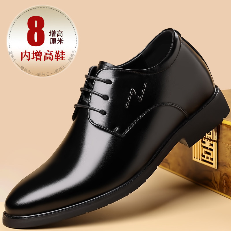 老人头男鞋商务正装内增高皮鞋6cm真皮英伦风潮流亮皮厚底婚鞋8cm