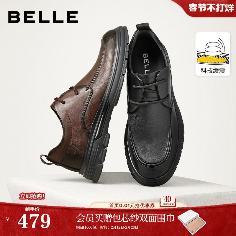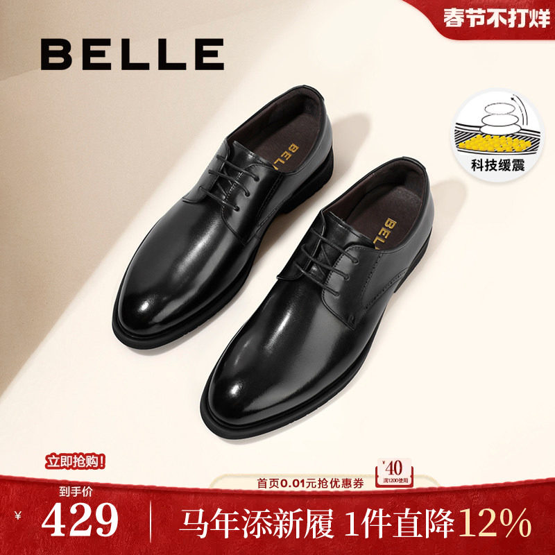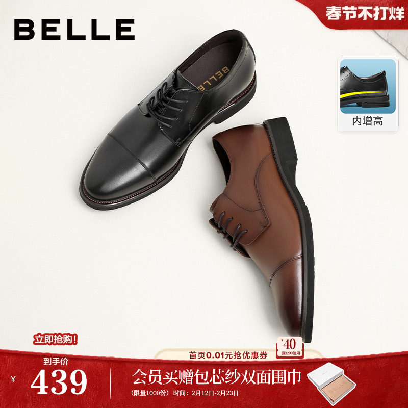 百丽男鞋商务正装结婚鞋男士真皮鞋内增高通勤牛津德比鞋A1095AM3