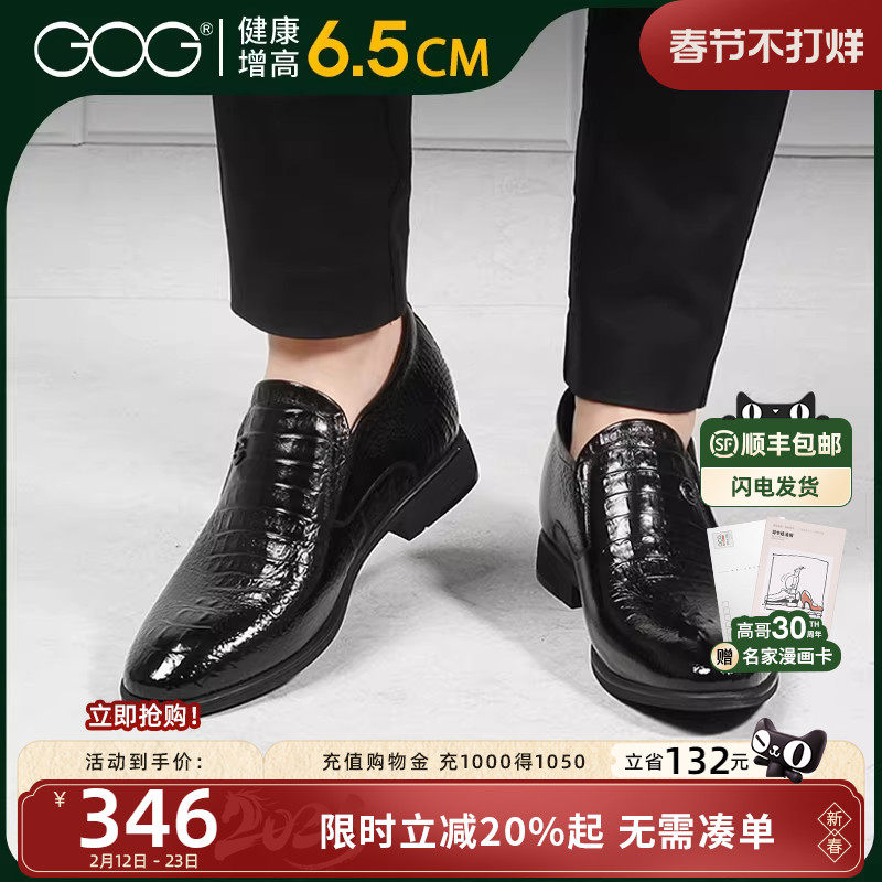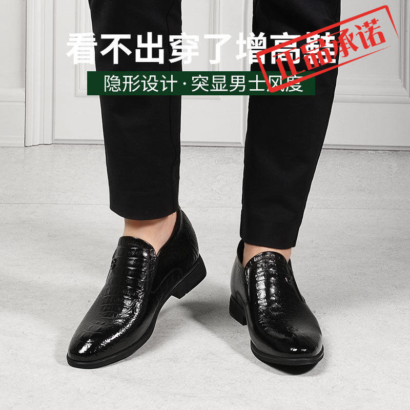 ㊣高哥男鞋英伦商务正装内增高皮鞋鳄鱼纹皮鞋韩版一脚蹬结婚鞋男