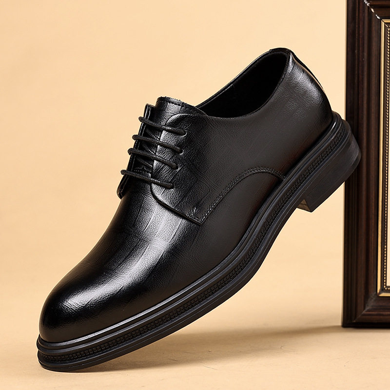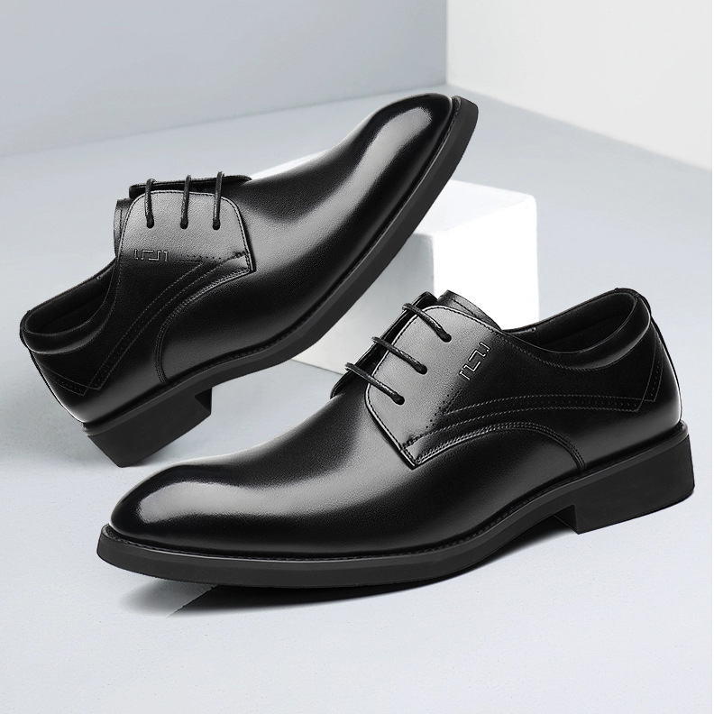冬季商务正装皮鞋男英伦风真皮休闲软底舒适上班内增高新郎结婚鞋