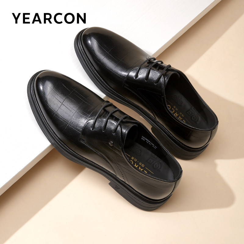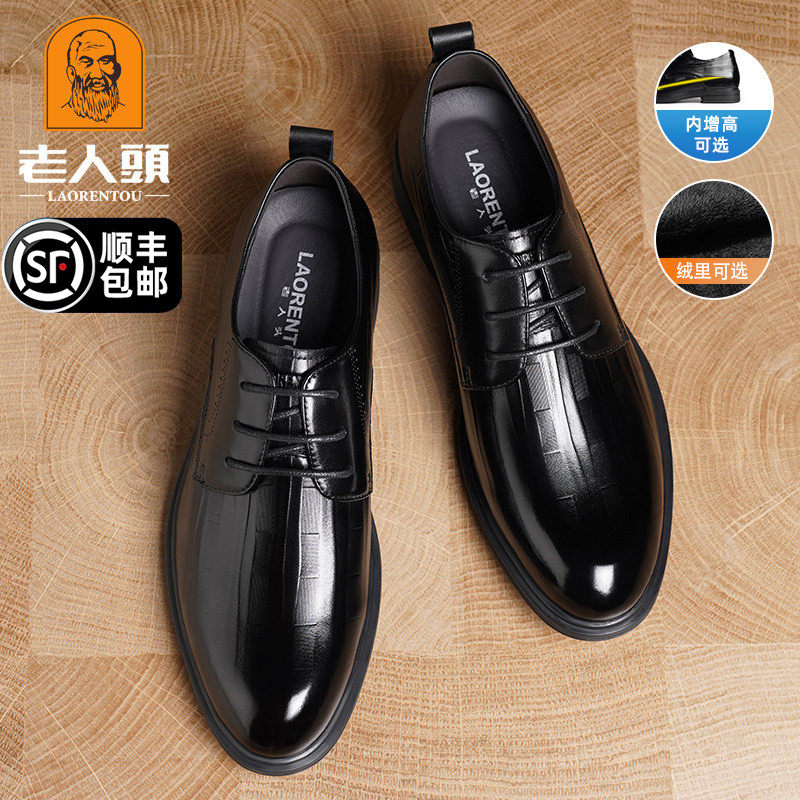 老人头男鞋秋冬新款商务正装男士皮鞋真皮内增高德比鞋新郎结婚鞋