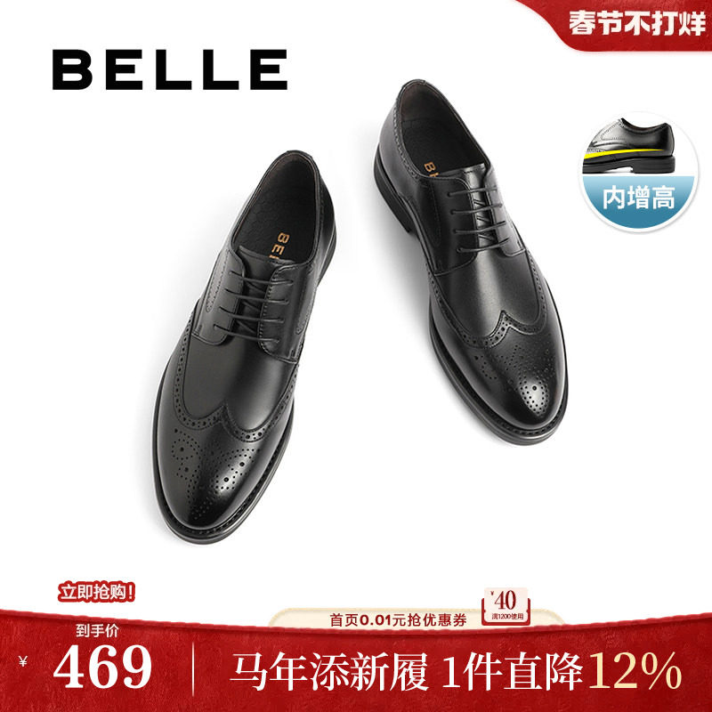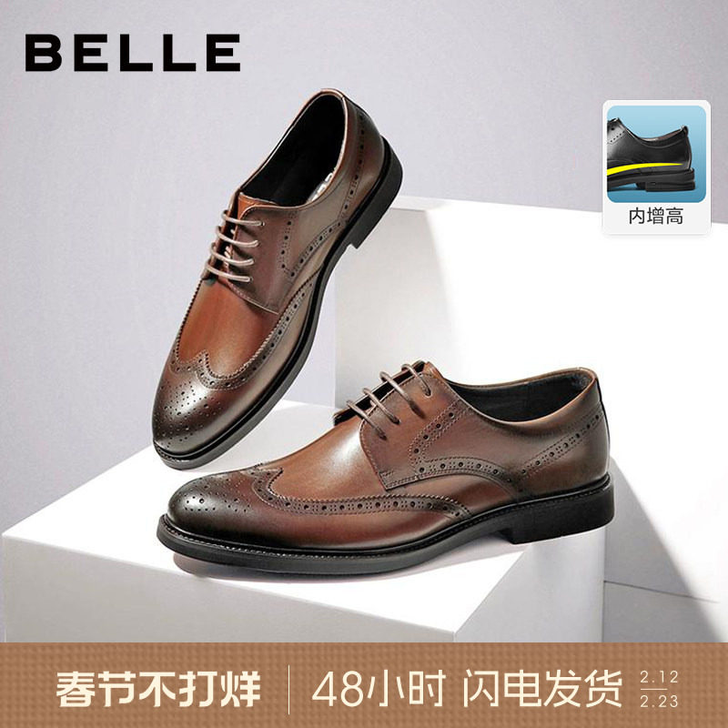 百丽男士款商务正装皮鞋男春秋季布洛克内增高新郎结婚鞋89183AM9