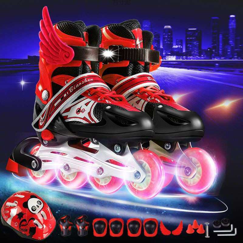 溜冰鞋儿童全套装3-5-6-7-8-10岁轮滑鞋直排旱冰鞋滑冰鞋可调闪光