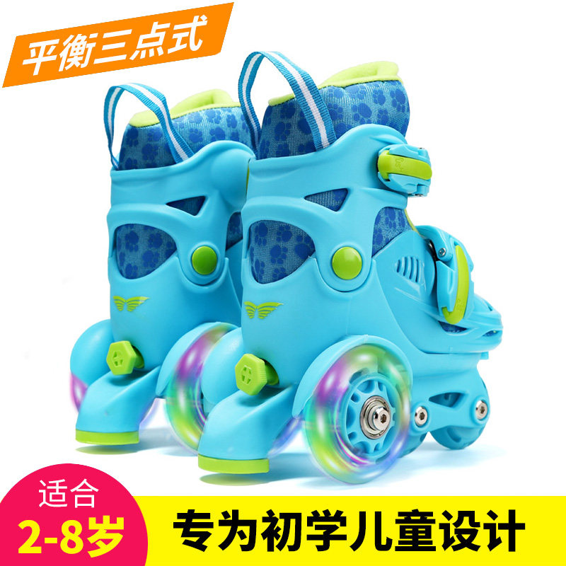 3-4-5-6-8-10岁男女童溜冰鞋三脚轮儿童全套装小孩双排轮滑鞋闪光