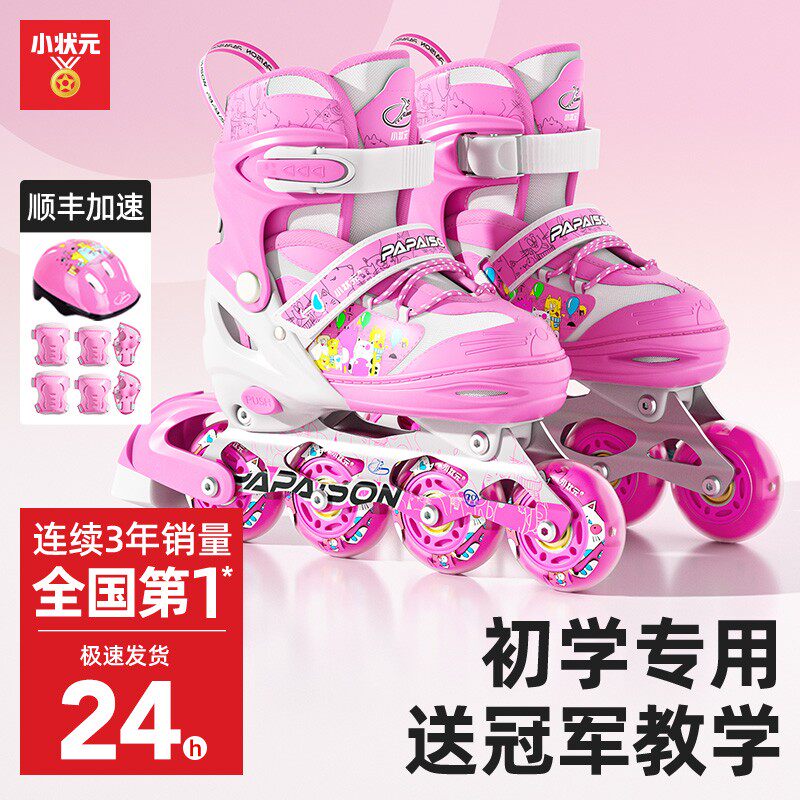 小状元溜冰鞋儿童旱冰轮滑鞋初学者套装女童男孩3-6-8岁防护可调