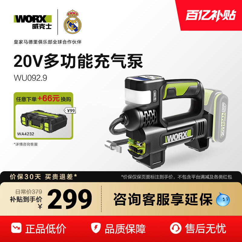 威克士20V汽车车载多功能充气泵WU092自动充停单缸高压家用打气泵