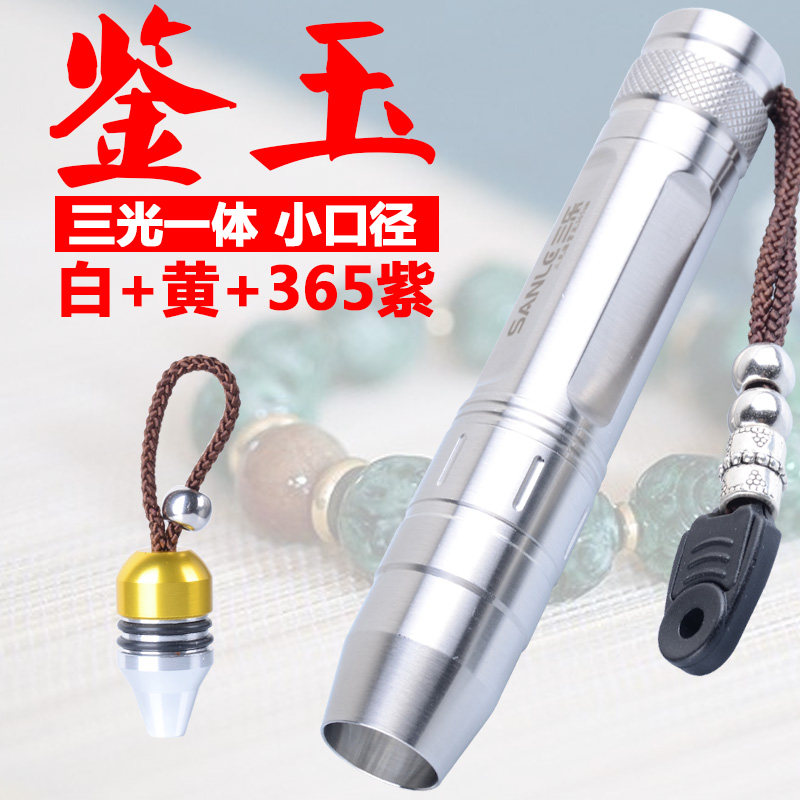 三光源鉴玉手电筒365nm紫光验烟验钞灯照玉珠宝琥珀防伪检测鉴定